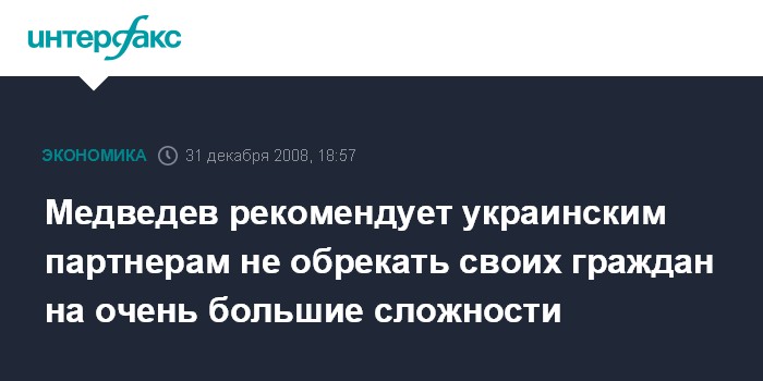 Медведев рекомендует украинским партнерам не обрекать своих граждан на очень большие сложности