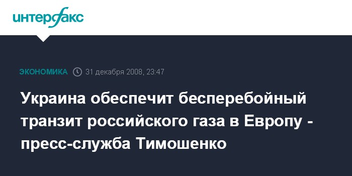 По ее словам, Ю.Тимошенко заверила, что "Украина обеспечит бесперебойный транзит газа по своей территории".