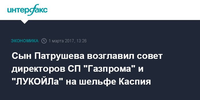 Сын Патрушева возглавил совет директоров СП "Газпрома" и "ЛУКОЙЛа" на шельфе Каспия