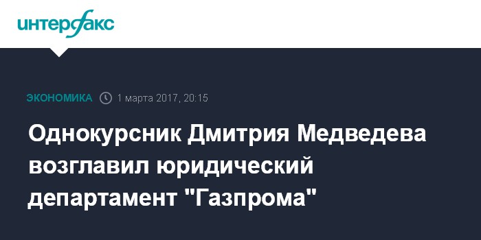 Однокурсник Дмитрия Медведева возглавил юридический департамент "Газпрома"