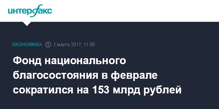 Фонд национального благосостояния в феврале сократился на 153 млрд рублей