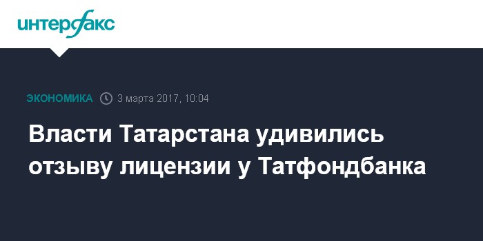 Власти Татарстана удивились отзыву лицензии у Татфондбанка