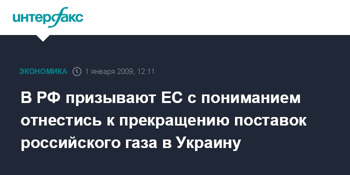 Москва. 1 января. INTERFAX.RU - В Совете Федерации рассчитывают, что Евросоюз правильно воспримет действия России по прекращению поставок газа в Украину из-за непогашения долгов.