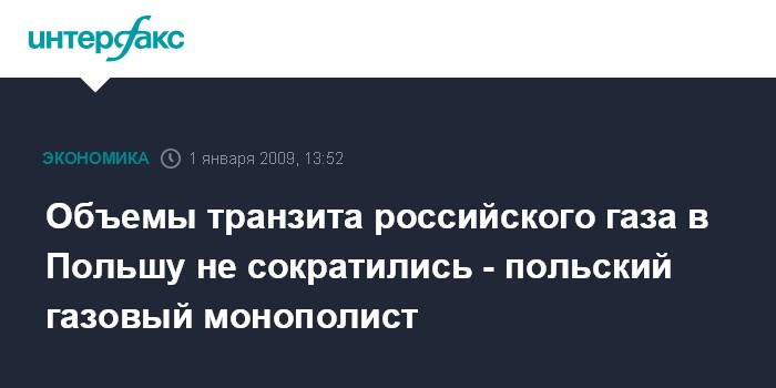 Объемы транзита российского газа в Польшу не сократились - польский газовый монополист