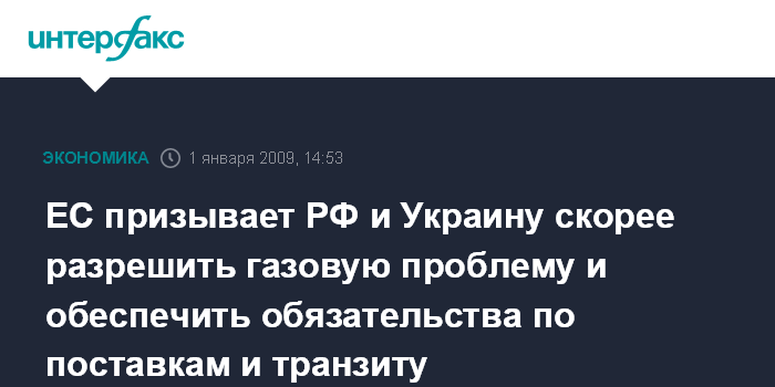 ЕС призывает РФ и Украину скорее разрешить газовую проблему и обеспечить обязательства по поставкам и транзиту