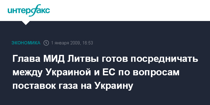 Вильнюс. 1 января. INTERFAX.RU - Министр иностранных дел Литвы Вигаудас Ушацкас предложил посредничество между Украиной и Европейским Союзом (ЕС) в решении поставок газа на Украину.