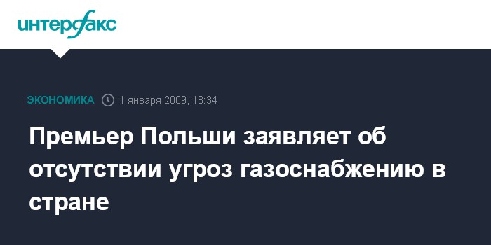 Варшава. 1 января. INTERFAX.RU - Польша находится в состоянии "относительной безопасности" на период российско-украинского газового спора. С таким заявлением выступил в эфире польского телеканала ТВН в четверг премьер-министр Польши Дональд Туск.