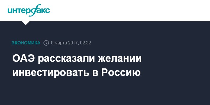 Москва. 8 марта. INTERFAX.RU - Объединенные Арабские Эмираты заинтересованы инвестировать в российские активы, сообщил министр энергетики ОАЭ Сухейль Мухаммад аль-Мазруи журналистам.