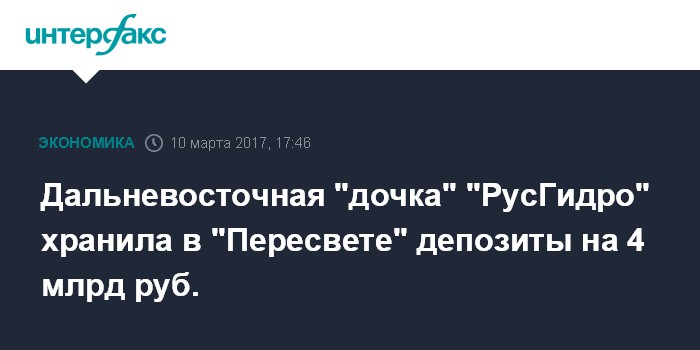 Дальневосточная "дочка" "РусГидро" хранила в "Пересвете" депозиты на 4 млрд руб.