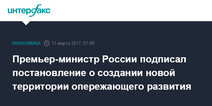 Премьер-министр России подписал постановление о создании новой территории опережающего развития