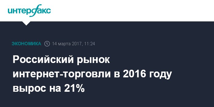 Российский рынок интернет-торговли в 2016 году вырос на 21%
