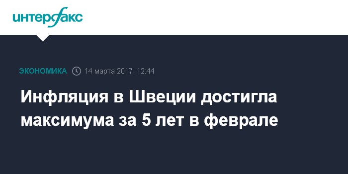 Инфляция в Швеции достигла максимума за 5 лет в феврале