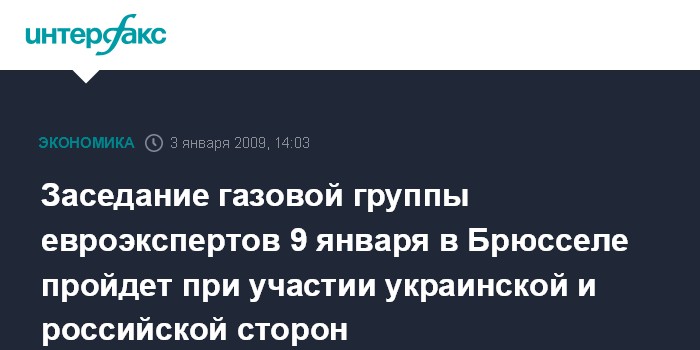 Москва. 3 января. INTERFAX.RU - Заседание координационной газовой группы европейских экспертов, которое состоится в следующую пятницу, 9 января, в Брюсселе, пройдет при участии украинской и российской сторон.