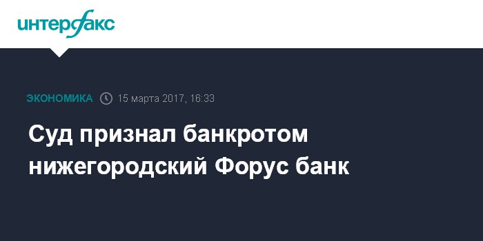 Москва. 15 марта. INTERFAX.RU - Арбитражный суд Нижегородской области в среду признал банкротом лишенный лицензии Фора-оппортюнити русский банк (Форус банк, Нижний Новгород) и ввел в отношении него конкурсное производство сроком на один год, сообщил корреспондент агентства "Интерфакс", присутствовавший на заседании. Конкурсное производство введено по иску Банка России в лице Волго-Вятского главного управления ЦБ РФ. Основной причиной иска ЦБ РФ назвал недостаток у банка имущества для исполнения его обязательств.