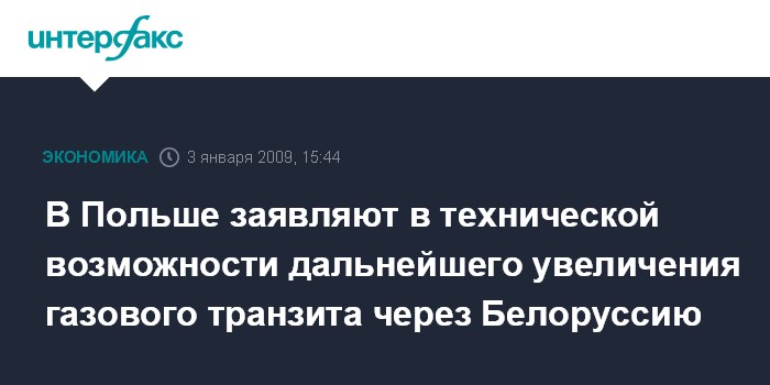 Москва. 3 января. INTERFAX.RU - Польша увеличила объем газового транзита из Белоруссии на 5 млн кубических метров в день и может увеличить его в дальнейшем еще на 2 млн кубических метров, чтобы компенсировать сокращение поставок через Украину. Такое заявление сделал на пресс-конференции в Варшаве в субботу директор национальной газотранспортной службы оператора газопровода Газ-Систем Тадеуш Абрамовски.