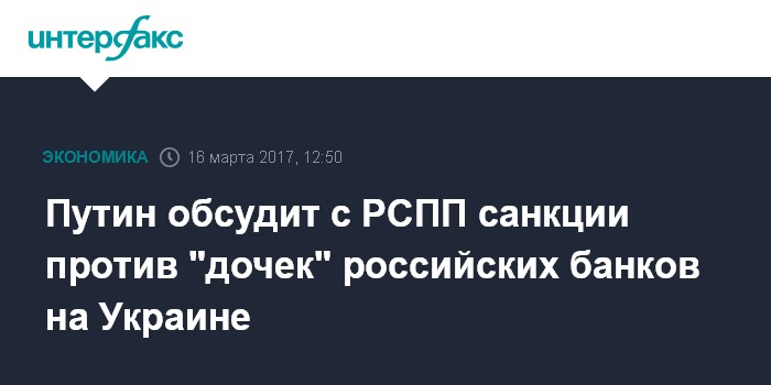 Путин обсудит с РСПП санкции против "дочек" российских банков на Украине