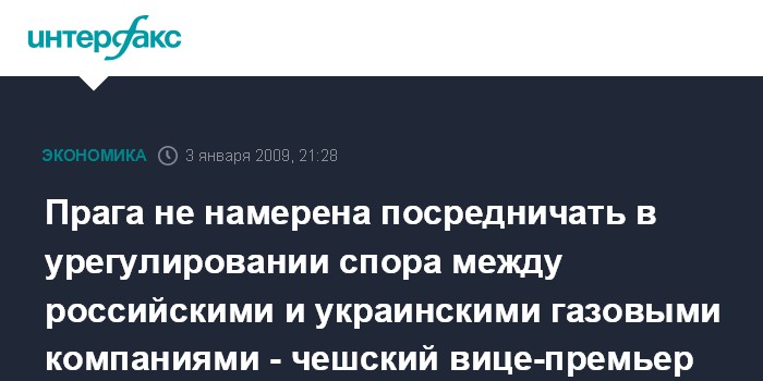 Прага не намерена посредничать в урегулировании спора между российскими и украинскими газовыми компаниями - чешский вице-премьер