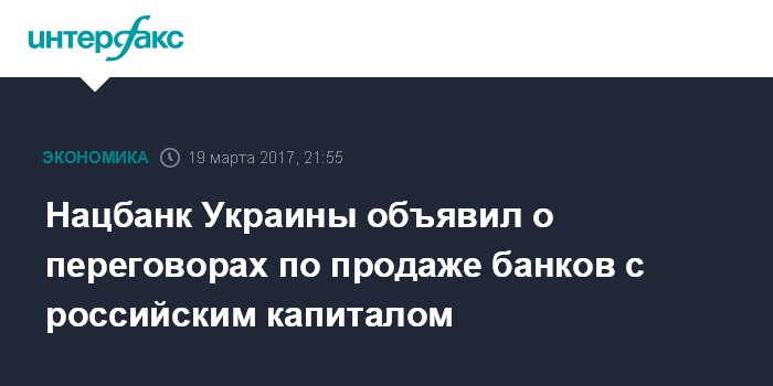 Москва. 19 марта. INTERFAX.RU - Национальный банк Украины (НБУ) заявляет, что все украинские банки с российским государственным капиталом на Украине ведут переговоры о продаже.