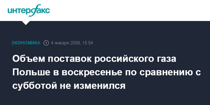Москва. 4 января. INTERFAX.RU - Объем получаемого Польшей российского газа в воскресенье не изменился по сравнению с субботними поставками благодаря увеличению транзита через Белоруссию, сообщила агентству "Интерфакс - Центральная Европа" Иоанна Закревска, представительница польского газового монополиста PGNiG.