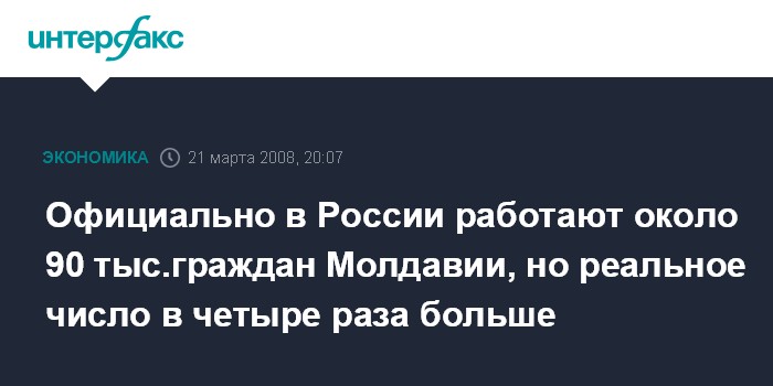 Кишинев. 21 марта. ИНТЕРФАКС - Число трудовых мигрантов из Молдавии, официально зарегистрированных в России, после упрощения процедуры учета увеличилось втрое, однако, по неофициальным оценкам, все еще составляет менее четверти реальной цифры.