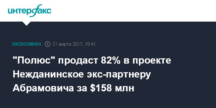 "Полюс" продаст 82% в проекте Нежданинское экс-партнеру Абрамовича за $158 млн