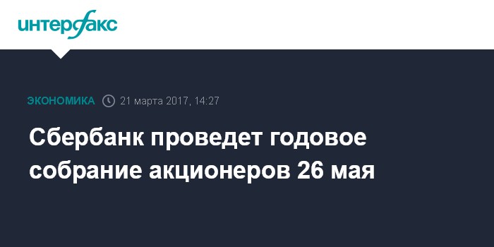 Сбербанк проведет годовое собрание акционеров 26 мая
