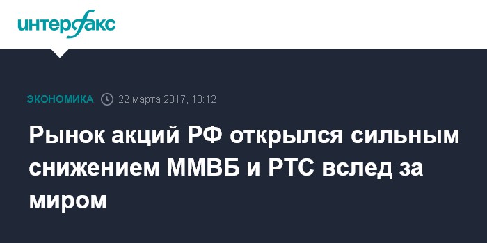 Рынок акций РФ открылся сильным снижением ММВБ и РТС вслед за миром