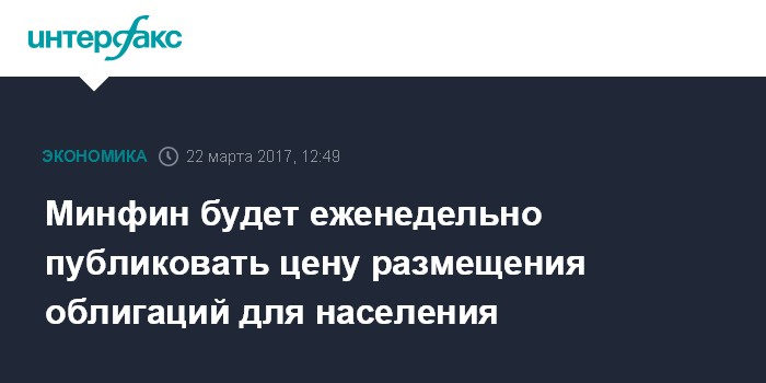 Москва. 22 марта. INTERFAX.RU - Минфин, планирующий в апреле предложить первый выпуск облигаций федерального займа для населения, будет каждую неделю