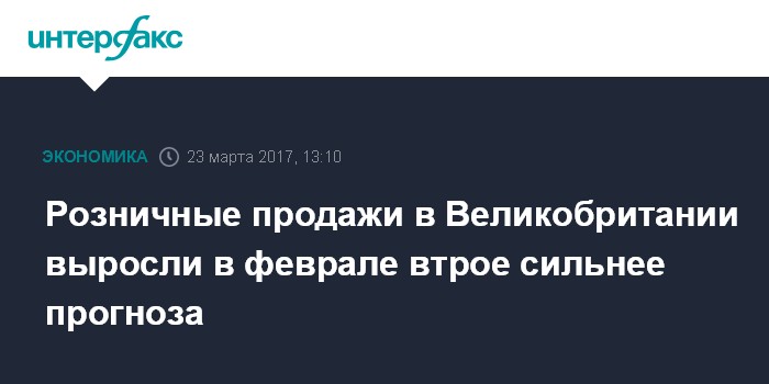 Рост продаж в годовом выражении составил 3,7% при ожидавшихся экспертами 2,6%. Согласно пересмотренным данным, в январе розничные продажи в Великобритании снизились относительно предыдущего месяца на 0,5% и повысились на 1% к январю 2016 года. Ранее было объявлено о снижении первого показателя на 0,3% и росте второго на 1,5%.