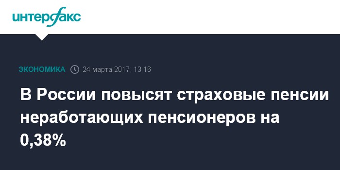 Москва. 24 марта. INTERFAX.RU - Дополнительная индексация страховых пенсий неработающим пенсионерам будет проведена с 1 апреля на 0,38%, заявил министр труда и социальной защиты Максим Топилин.