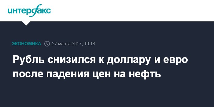 Москва. 27 марта. INTERFAX.RU - Доллар США и евро растут на Московской бирже в понедельник утром; рубль снижается к бивалютной корзине на фоне падения цен на нефть.