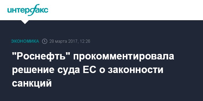 "Суд отказался признать, что санкции ЕС были приняты, в том числе, для достижения скрытых целей и, в действительности, являются способом конкурентной борьбы. Тем не менее, суд не смог объяснить, почему ограничения, поводом для которых послужило присоединение Крыма к РФ, касаются таких вопросов как доступ нефтяных компаний на международные финансовые рынки, нефтедобыча на арктическом шельфе, разработка трудноизвлекаемых запасов, глубоководных и сланцевых месторождений. Компания считает, что санкции, которые были введены против нее странами ЕС, в первую очередь, нацелены на то, чтобы увеличить риски ведения бизнеса, помешать реализации значимых проектов и создать, таким образом, преференции для других игроков на нефтяном рынке", - говорится в сообщении.