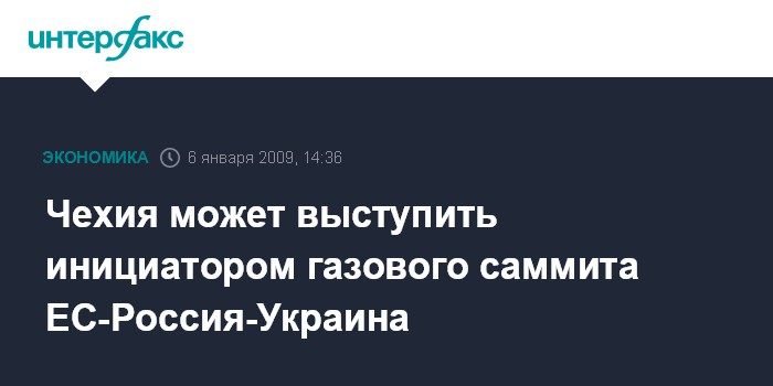 Москва. 6 января. INTERFAX.RU - Чехия как страна-председатель ЕС не исключает возможности выступить с предложением о проведении трехстороннего саммита по газовой тематике с участием ЕС, России и Украины. Такое заявление сделал во вторник глава чешского правительства Мирек Тополанек.