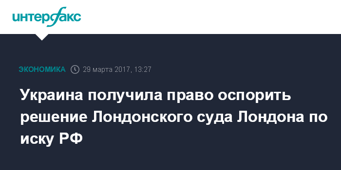 Украина получила право оспорить решение Лондонского суда Лондона по иску РФ
