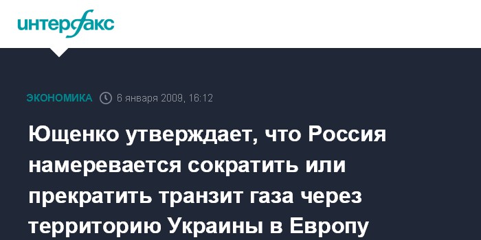 Ющенко утверждает, что Россия намеревается сократить или прекратить транзит газа через территорию Украины в Европу