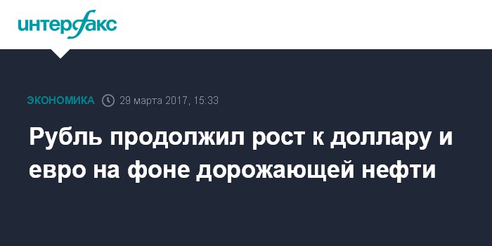 Как отмечают эксперты "Интерфакс-ЦЭА", рубль немного повышается к доллару и евро на дневных торгах на фоне дорожающей нефти, цены на которую растут вторую сессию подряд. В среду рынок продолжает отыгрывать новости о сокращении добычи и объявлении форс-мажора в Ливии. Кроме того, участники рынка отмечают положительные сигналы о возможности продления соглашения ОПЕК и не-ОПЕК об ограничении производства нефти. Цена июньских фьючерсов на нефть Brent на лондонской бирже ICE Futures к 15:01 МСК повысилась на 0,66% - до $51,76 за баррель. Майский контракт на нефть WTI на электронных торгах Нью-йоркской товарной биржи (NYMEX) подорожал на 0,54% - до $48,63 за баррель.