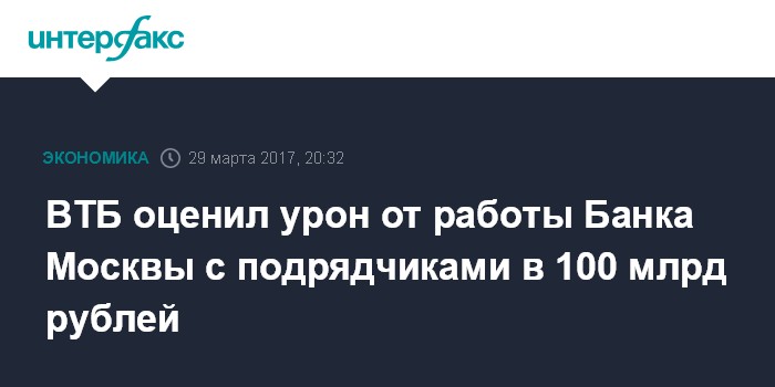 ВТБ оценил урон от работы Банка Москвы с подрядчиками в 100 млрд рублей