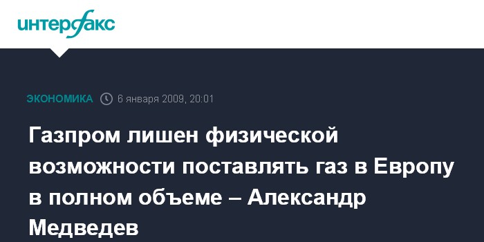Берлин. 6 января. ИНТЕРФАКС - Зампред правления "Газпрома" Александр Медведев заявил, что минувшей ночью произошли события, которые "не имеют прецедентов в истории мирового газового рынка".