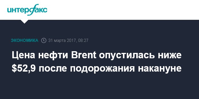 Цена нефти Brent опустилась ниже $52,9 после подорожания накануне