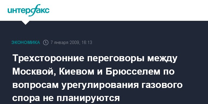 Трехсторонние переговоры между Москвой, Киевом и Брюсселем по вопросам урегулирования газового спора не планируются