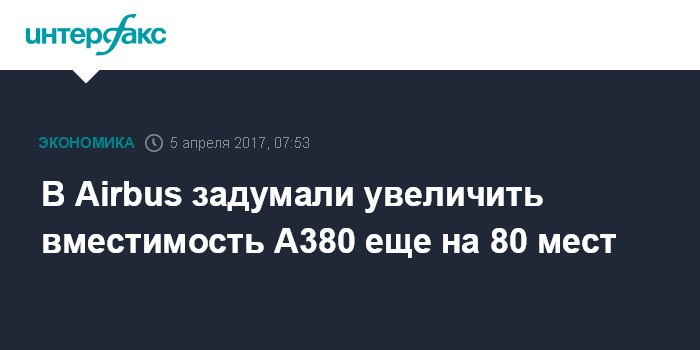 Москва. 5 апреля. INTERFAX.RU - Авиастроительный концерн Airbus нашел возможность расширить вместимость своего лайнера A380 в стандартной комплектации еще на 80 посадочных мест за счет изменений в дизайне салона, говорится в сообщении компании.