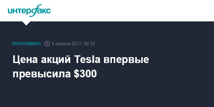 Москва. 5 апреля. INTERFAX.RU - Цена акций компании Tesla, созданной Илоном Маском в 2003 году, на торгах 4 апреля впервые превысила $300, в течение сессии она поднималась до $304, завершив ее на отметке $303,7 (+1,7%). Аналитики ожидают, что в ближайшие дни Tesla может обогнать General Motor и стать самым дорогим автоконцерном США.