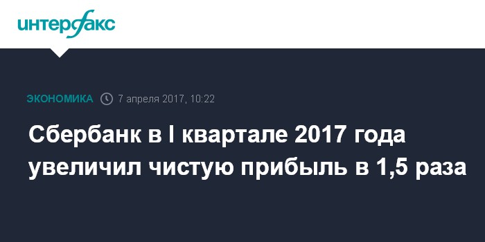 Сбербанк в I квартале 2017 года увеличил чистую прибыль в 1,5 раза
