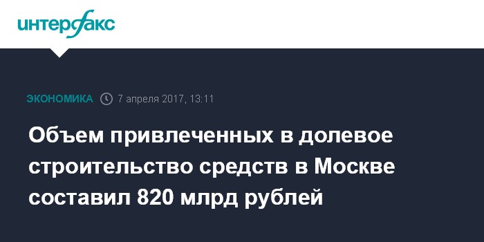 Объем привлеченных в долевое строительство средств в Москве составил 820 млрд рублей
