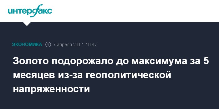 Эксперты опасаются, что удар, ставший реакцией на применение в Сирии химического оружия, может вызвать рост напряженности в отношениях США и России, которая уже квалифицировала действия Штатов как акт агрессии. Котировки контрактов на драгметалл с поставкой в июне на бирже в Нью-Йорке подскочили на 1%, до $1265,5 за унцию. Ранее они достигали $1273,3 за унцию, рекордной отметки с 10 ноября.