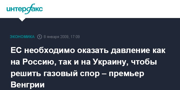 ЕС необходимо оказать давление как на Россию, так и на Украину, чтобы решить газовый спор – премьер Венгрии