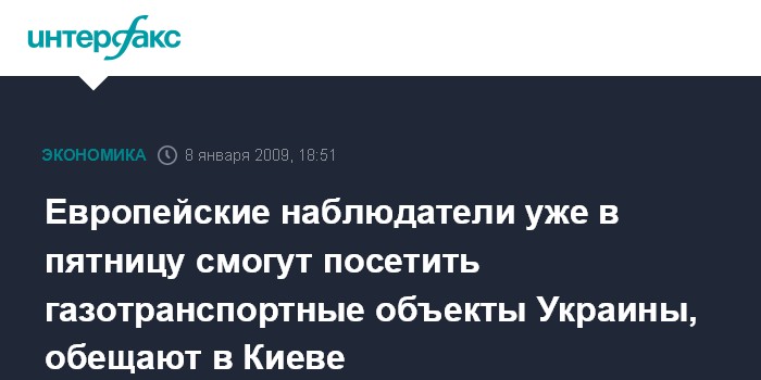 Европейские наблюдатели уже в пятницу смогут посетить газотранспортные объекты Украины, обещают в Киеве