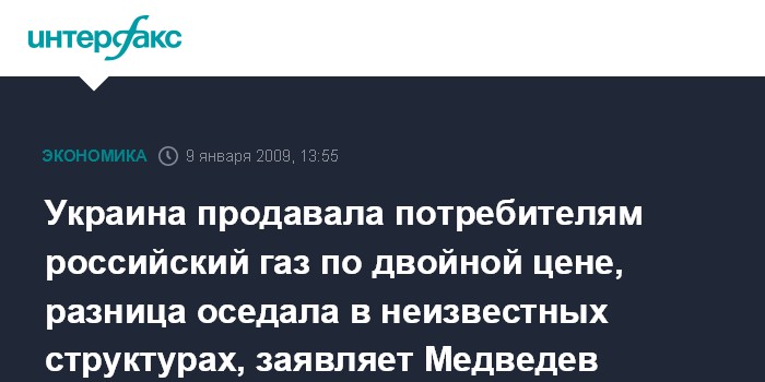 "В прошлом году, когда мы поставляли газ украинским потребителям по 179,5 долларов, этот же самый газ украинский потребитель получал по цене 320 долларов за тысячу кубометров. И вся эта маржа оседала в карманах структур, которые нам не известны, которые, по всей вероятности, выражают чьи-то коррупционные интересы. И деньги от этих сделок, по всей вероятности, использовались для достижения политических целей или для решения личных проблем", - сказал Д.Медведев на встрече с главой "Газпрома" Алексеем Миллером.
