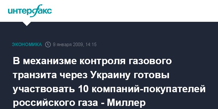 В механизме контроля газового транзита через Украину готовы участвовать 10 компаний-покупателей российского газа - Миллер