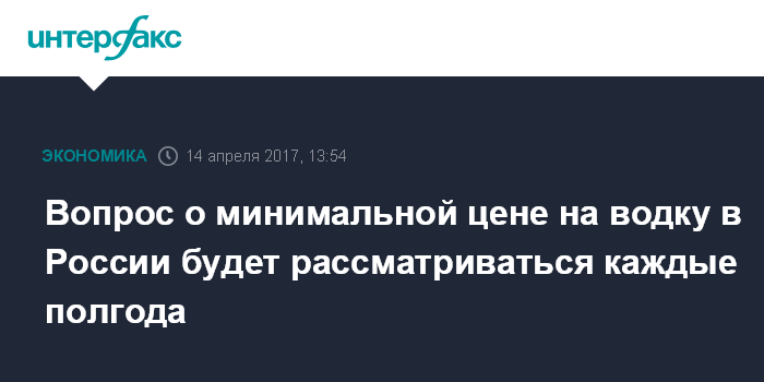 "Мы договорились раз в полгода собираться, обсуждать, изучать рынок. Мы будем корректировать (минимальную цену - ИФ) в следующий раз к 2018 году", - сказал он. Как сообщалось, приказ Минфина о повышении минимальной цены на водку находится на регистрации в Минюсте.